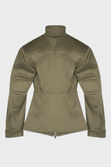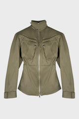 from MUGLER. Cotton gabardine jacket, press-stud throat guard at stand collar. Two-way zip closure, zip and welt pockets. Elasticised waist and curved hem. Press-stud tab at cuffs.