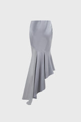 Asymmetric swirled paneled skirt in quarry from Oude Waag.