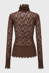 Checked lace knitted top from Oude Waag. This top is knitted from fine merino wool, offering a soft and smooth handle. The sheer, lightweight bodice combined with the checked pattern creates an ethereal yet sensual look. Raw-edge detailing on the body and cuffs adds rich texture. The piece comes with a detachable neck warmer that can also be styled as a headband, making it even more versatile.