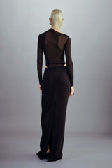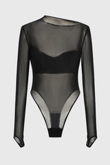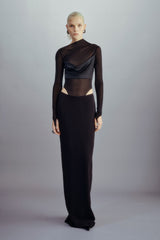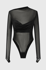 Draped strapless silk mesh bodysuit in black from Oude Waag. Crafted from a blend of silk mesh and stretchy triacetate fabric, this bodysuit feels soft, lightweight, and skin-hugging. The asymmetric neckline highlights the shoulder and neck curves, while the fitted design enhances the slimness of the upper body. The asymmetric drape at the chest add layer to the styling.