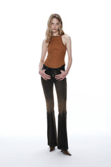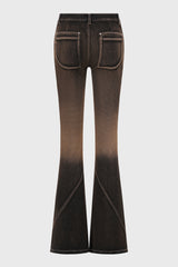 Washed stretch-denim flared jeans from Oude Waag. The flared shape is accentuated by deconstructed curved seams that elongate the legs and add geometric flair. Washed hems seamlessly blend vintage charm with contemporary design. Finished with a zip fly, the stretch fabric ensures a comfortable fit.