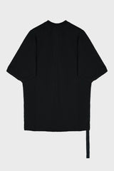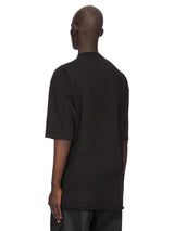 Jumbo ss t in black/pearl compact heavy jersey from Rick Owens DRKSHDW FW25 Concordians.This jumbo ss t is below hip length with an oversized fit. It has a ribbed crewneck and elbow-length short sleeves. It features signature front level shoulder seams and a centre back seam.