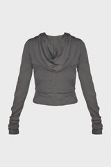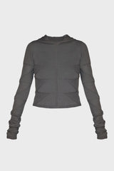 Hooded top motivo in darkdust light weight rasato knit from Rick Owens FW25 Concordians.