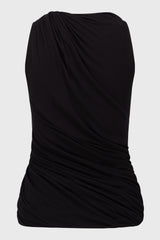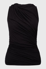 Luna top in black fluid viscose jersey from Rick Owens Lilies ss25 Hollywood. This mediumweight and fluid viscose jersey and has a soft and lightly brushed handfeel.
