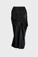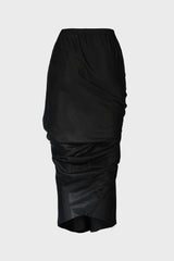 Seb Skirt in black washed cupro from Rick owens AW25 Concordians. This mediumweight washed cupro satin is fluid and finished with enzymes which gives this fabric its peach handfeel.