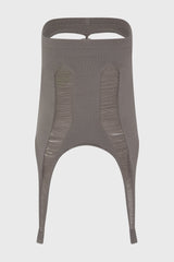 Tanja strapless t in dust shredded merino knit from Rick Owens ss25 Hollywood runway.