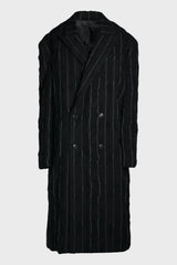 WOOL STRIPE PEAKED LABEL COAT