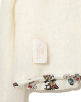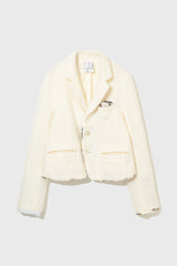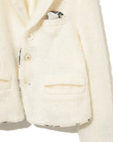 Wool and mohair short jacket in off white from Undercover. It has Silk accents, Front welt pockets, Cupro lining and Back tag.