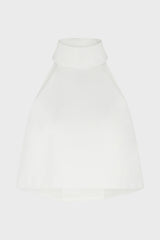 Halterneck satin cropped blouse in white with central pleat detailing from We11done, it features a halterneck with hook-eye fastening, central inverted pleat at back, cropped length.