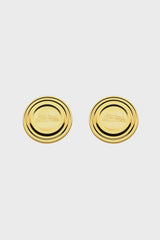 Gold-toned brass earrings in the shape of engraved Jean Paul Gaultier can lids from Jean Paul Gaultier. Sold as a pair with Push clasp.