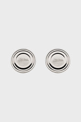Silver-toned brass earrings in the shape of engraved Jean Paul Gaultier can lids from Jean Paul Gaultier. Sold as a pair with Push clasp.