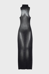 Mesh high neck long dress printed "Body dust" with sparkles spray from Jean Paul Gaultier.