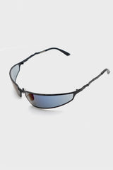 Both masks are characterized by a futuristic, sci-fi flair, with a narrow, multi-faceted nose bridge that integrates seamlessly into the frame. Beveled edges enhance the design, adding depth and sophistication. Crafted to provide an expansive peripheral view, the lenses are securely housed within a frontal section that flows seamlessly into the temples. The fluid design is further elevated by a hand-hammered finish,accentuating the raw, organic textures of the material and creating a perfect harmony of form and function