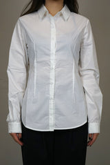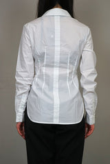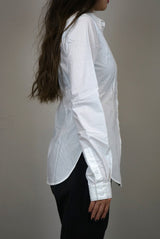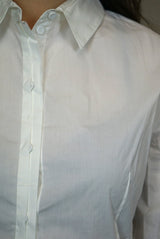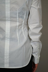 White cotton fitted shirt from Isabel Benenato, featuring front and back darts, button placket, double cuffs and rounded hem.