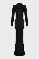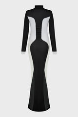 Silhouette maxi dress from Grace Ling. It reshapes the curves through concealing and revealing. Style with a black or nude string thong. Stretch jersey. Fully fashioned knit. Signature logo tag in onyx.