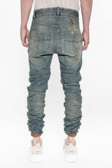 Light denim acid washed body molded trousers from Boris Bidjan Saberi.
