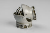 DA: Dirty Sterling. Sterling silver, dipped in acid to create a subdued surface. Results will never be identical, and this nuance / variation should be seen as a characteristic of the uniqueness of the product.